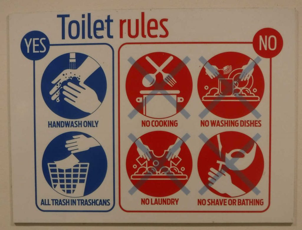 The bathroom had interesting rules. It sounds like campers or the unhoused might frequent the area, although I saw no homeless at all on the entire tour. Iceland is a socialist country, our guide told us, so there are not many homeless at all.