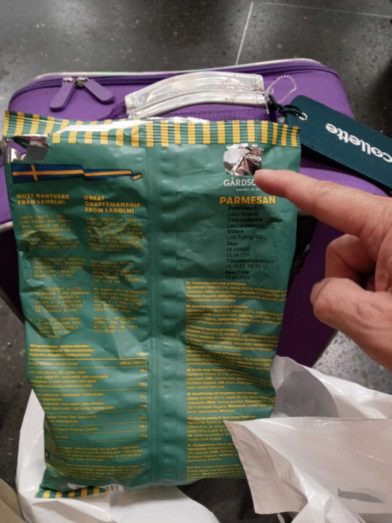 At the airport, I started to nibble on that big 99 KR bag of Swedish potato chips. Rather stale – perhaps that’s why it was 80¢. The bag had (apparently intentional) vents in it Perhaps the air is so dry in Iceland that chips stay crispier if vented?