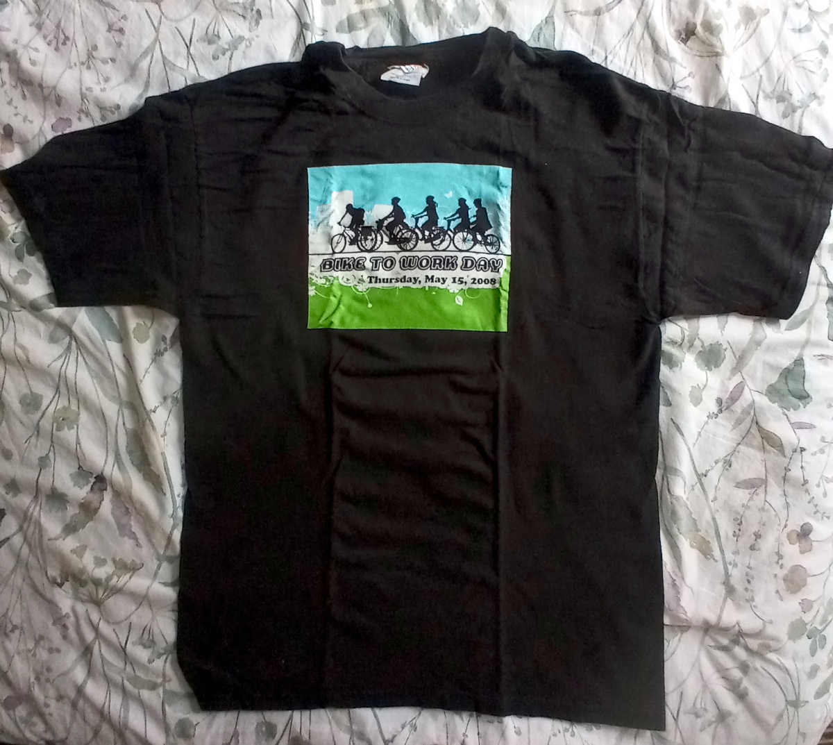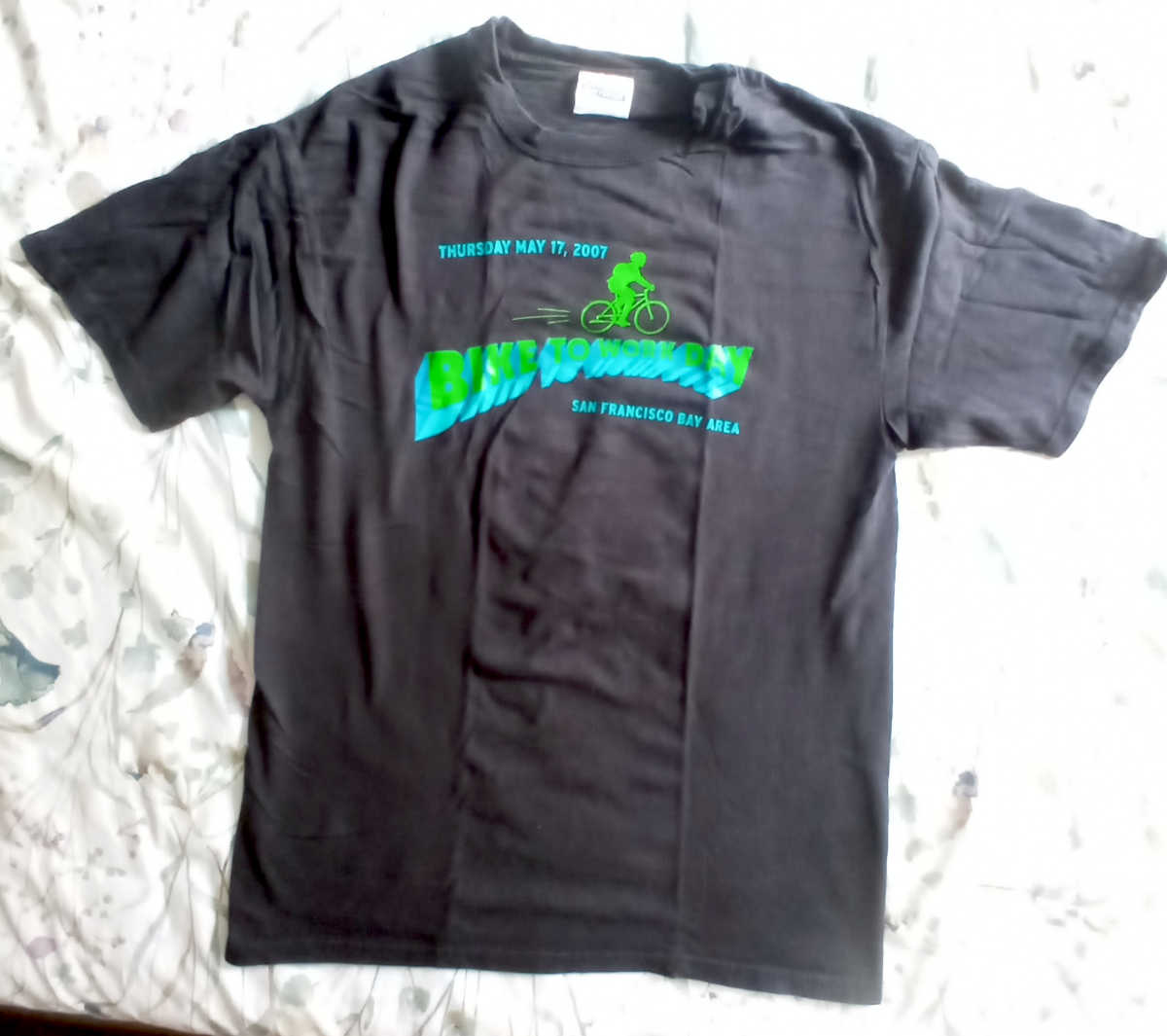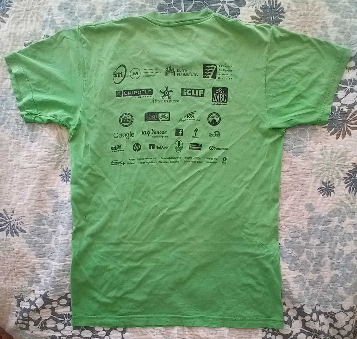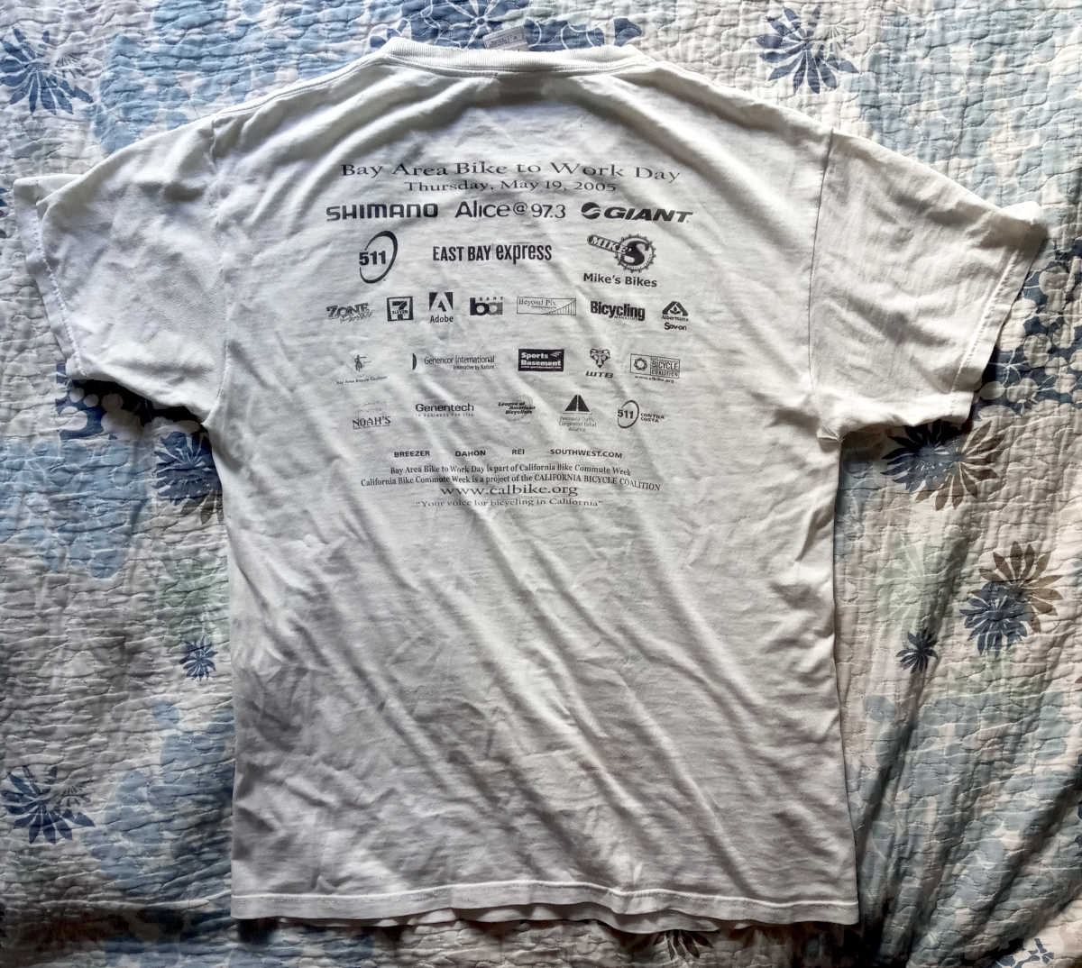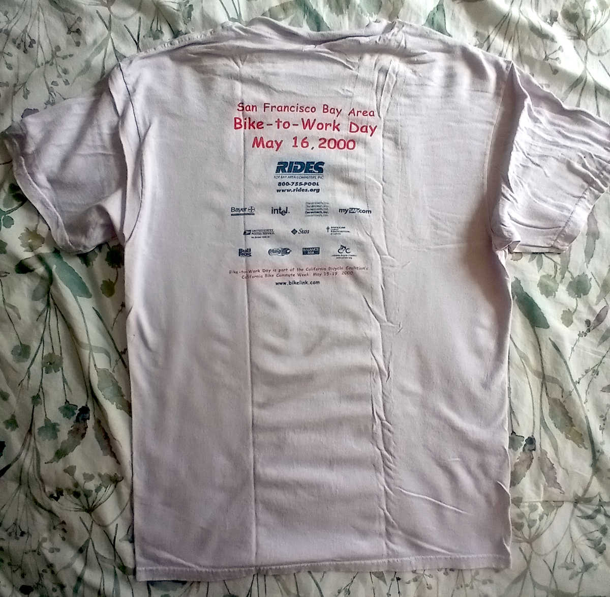 Below are several more Bike to Work Day shirts. HP, where I worked, was once one of the sponsors of the event, but that tapered off in later years. It’s interesting to see the major sponsor lists on the backs of the shirts change over time. I was a volunteer for Bike to Work Day pretty much every year, and actually biked to work for about 25 years. No accidents in all that time, Thank God.