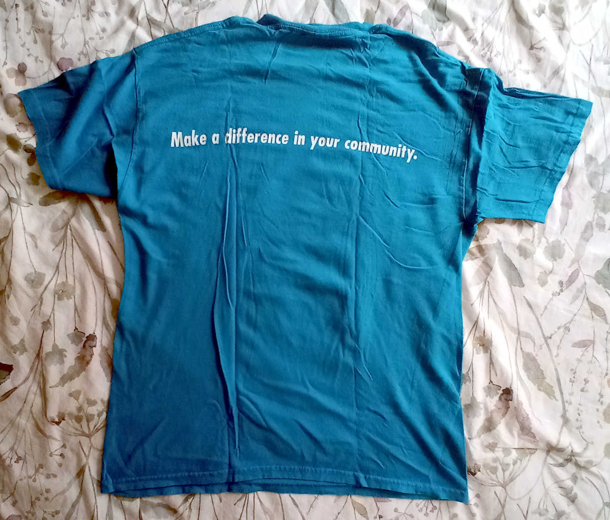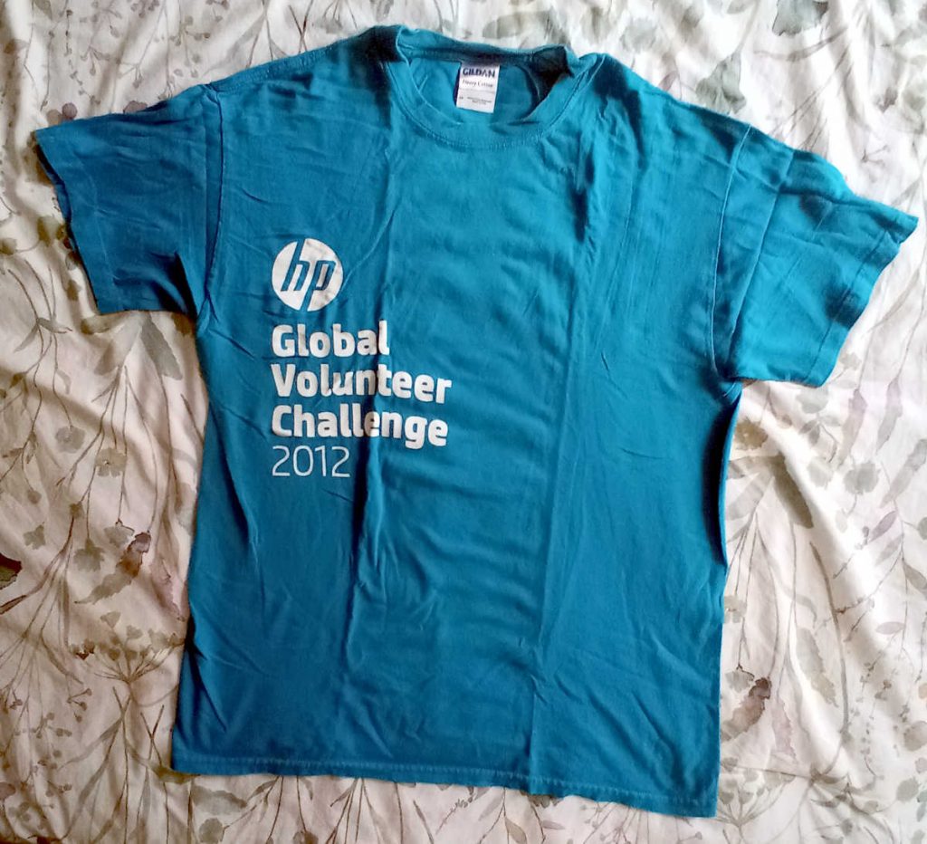 HP actually had many, many volunteer opportunities, for which I am grateful. However, I don’t remember what this particular shirt was from. It was at the bottom of a drawer for years.